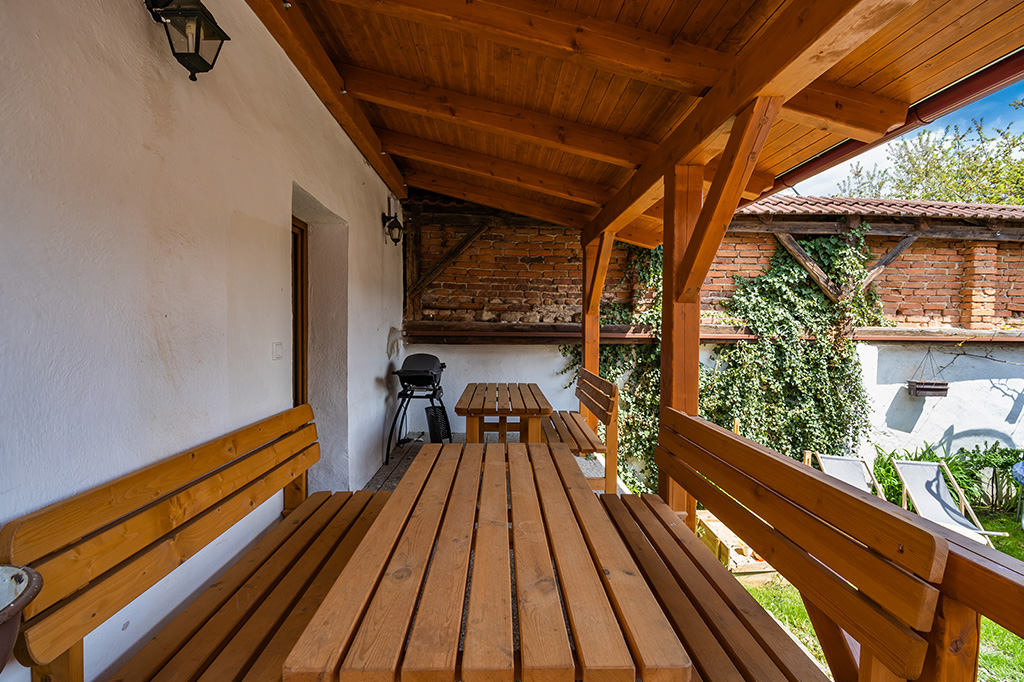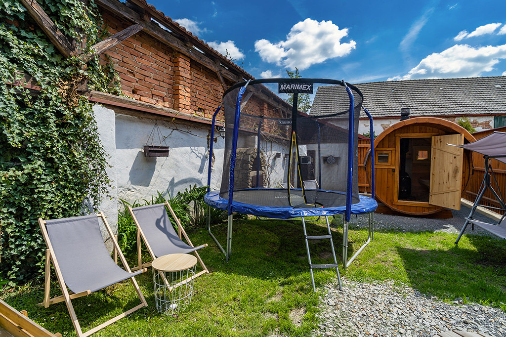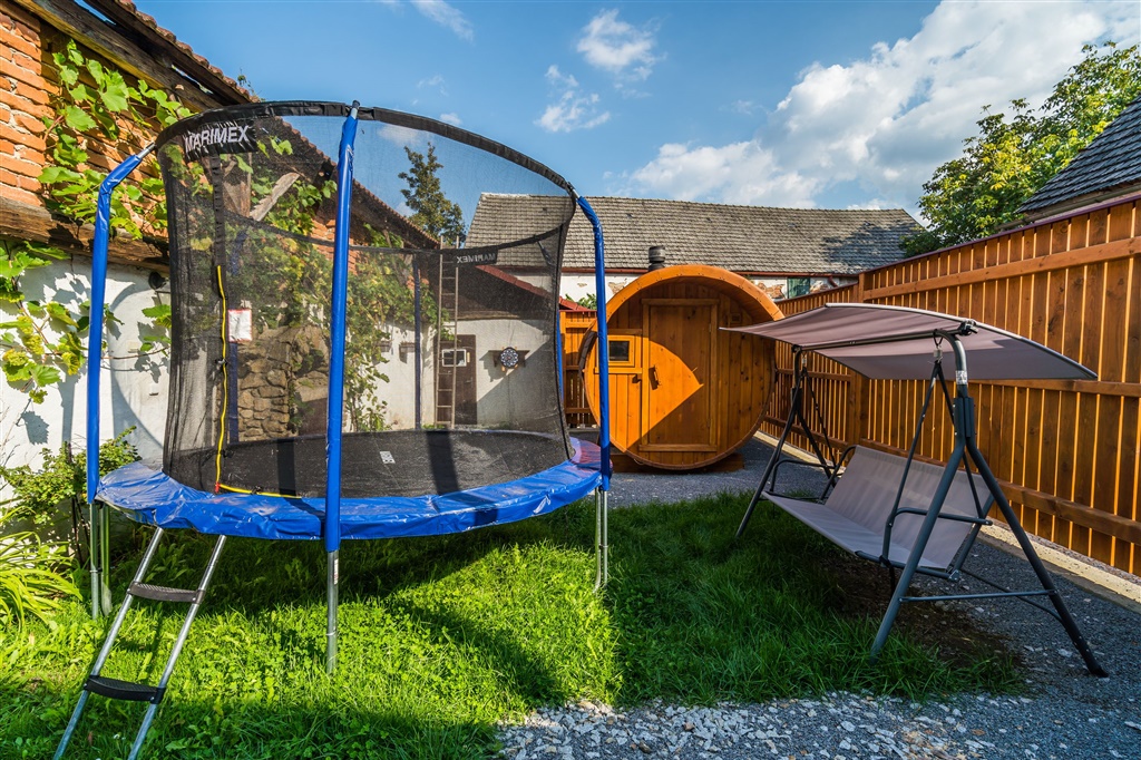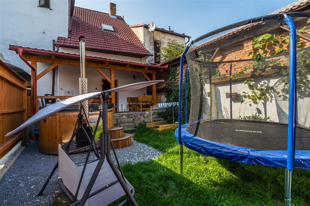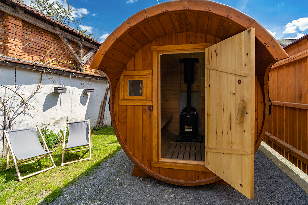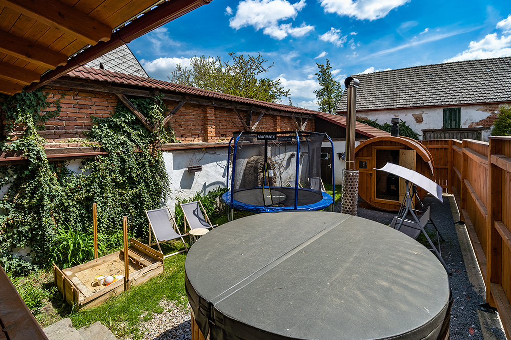 venkovní koupací káď a srubová sauna neomezeně během pobytu
