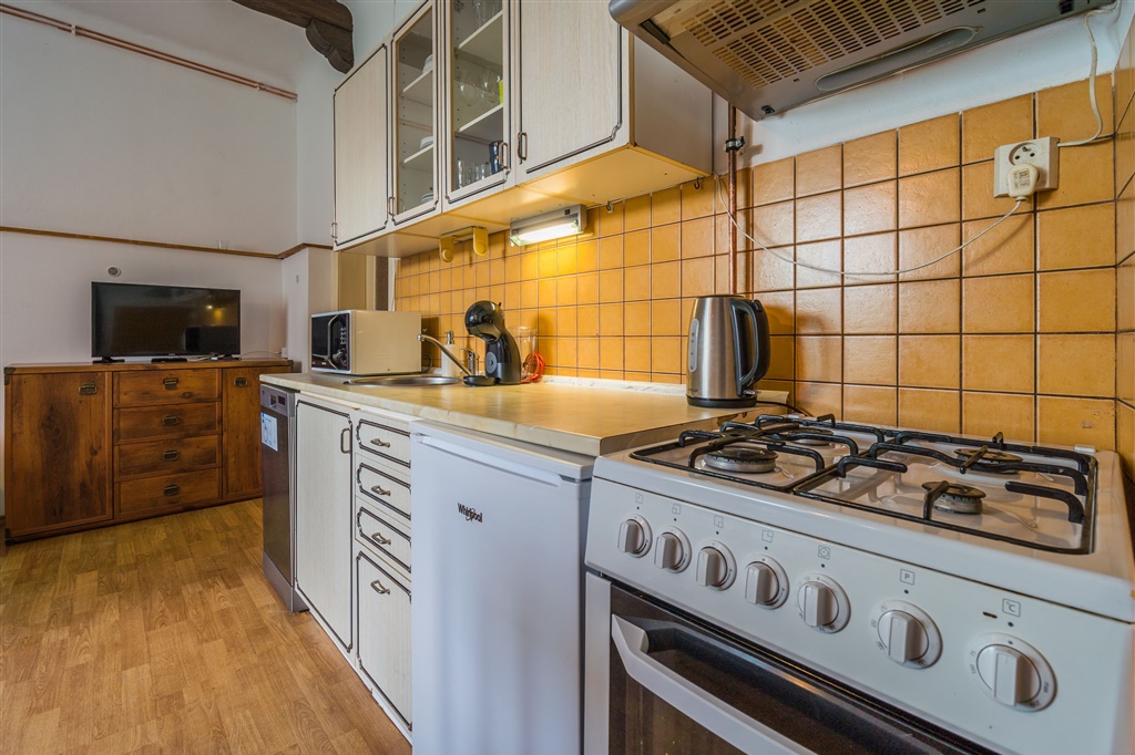 V chalupě je k dispozici 2x vybavená kuchyně (1x sklokeramická deska, el. trouba, 1x plynový sporák, 2x lednička, mikrovlnná trouba, 1x myčka, rychlovarná konvice, kávovar) s jídelním stolem.