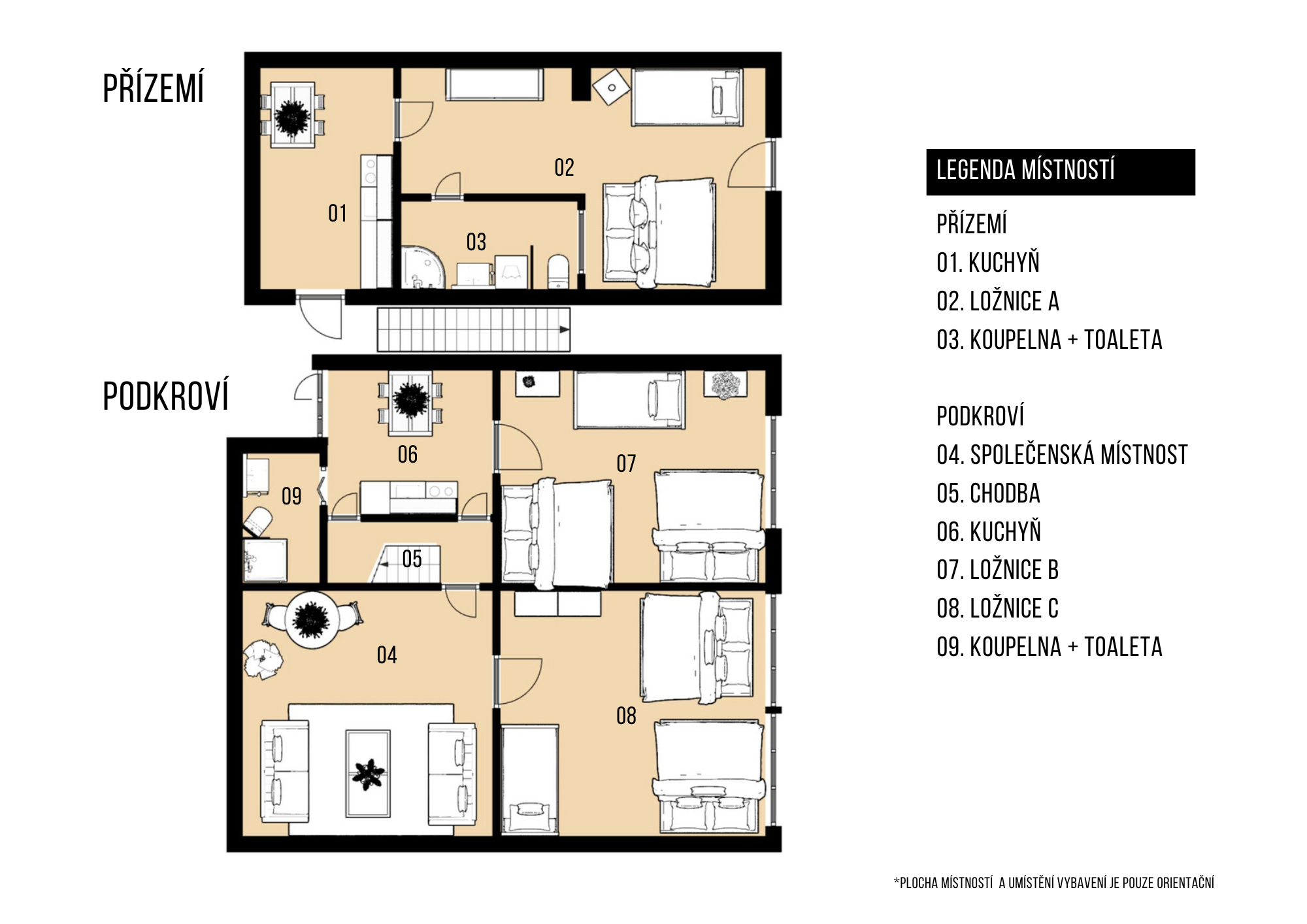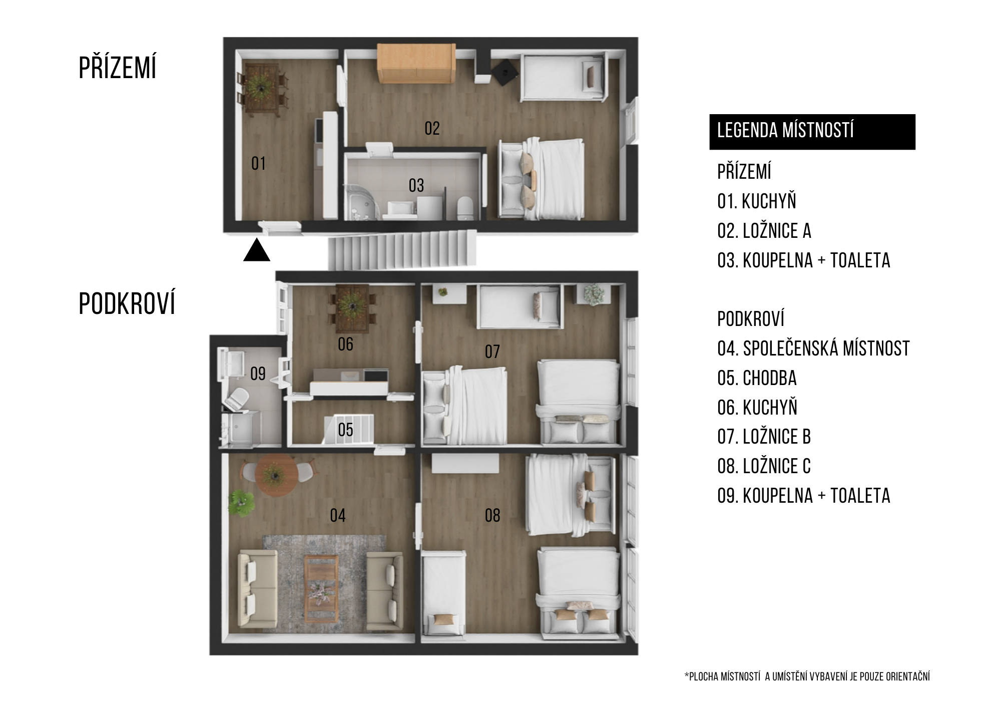 K dispozici ubytování až pro 16 osob ve dvou podlažích.