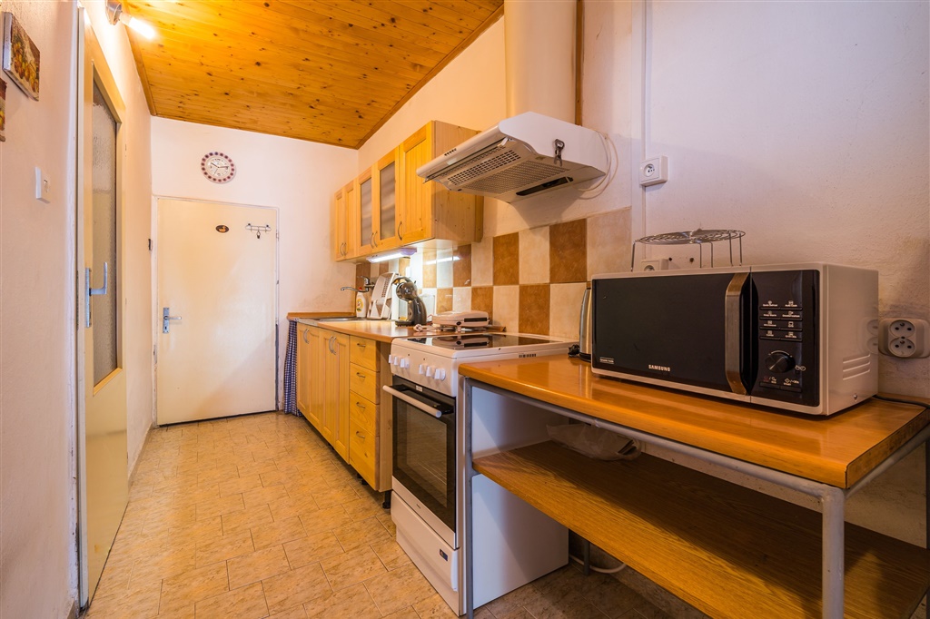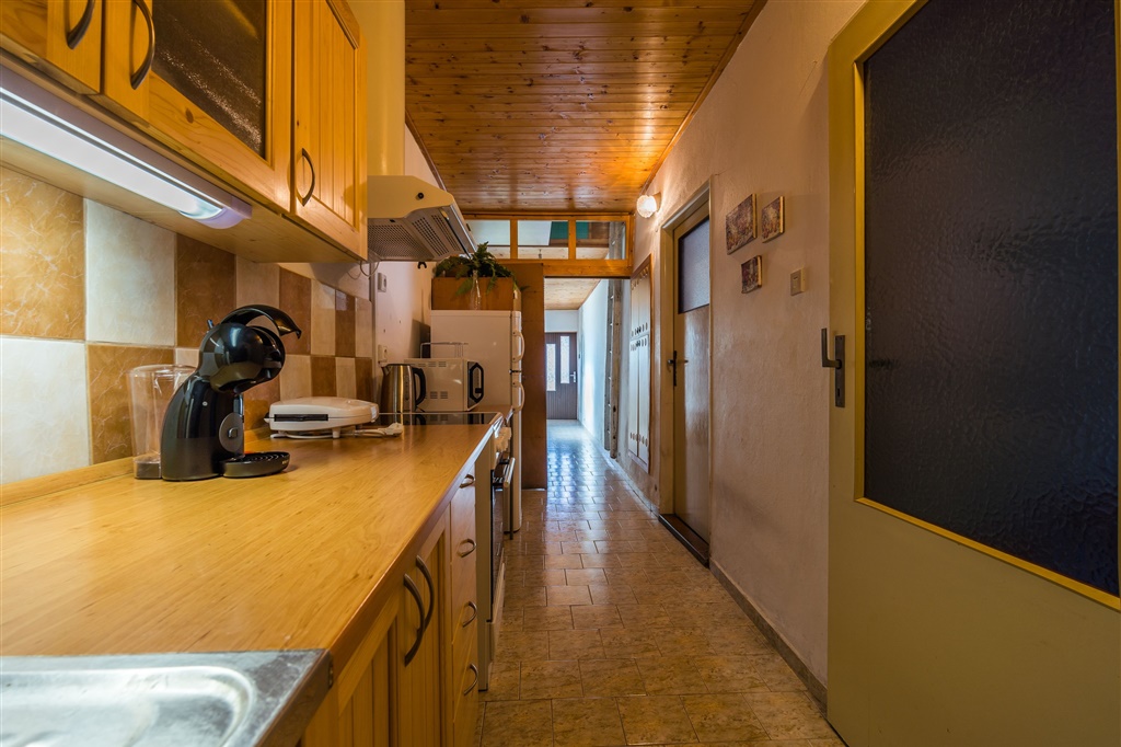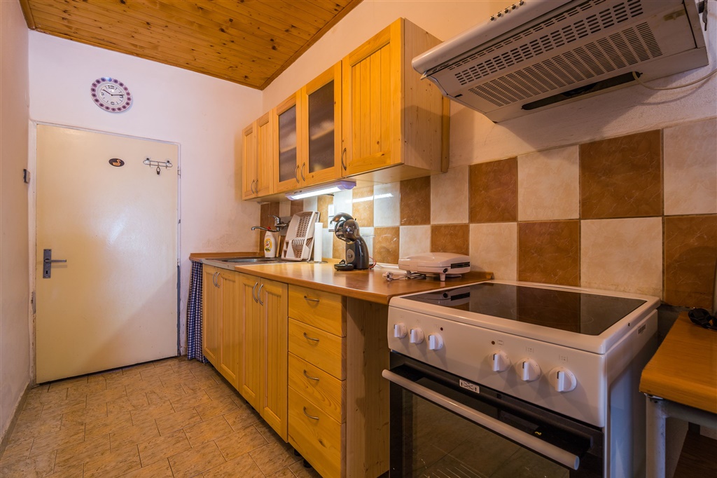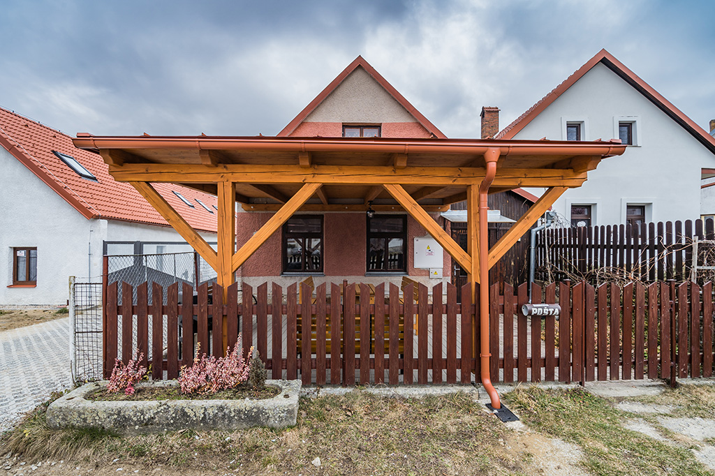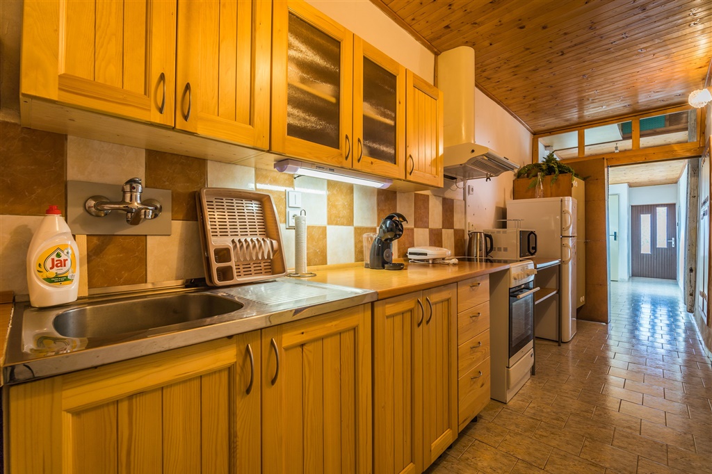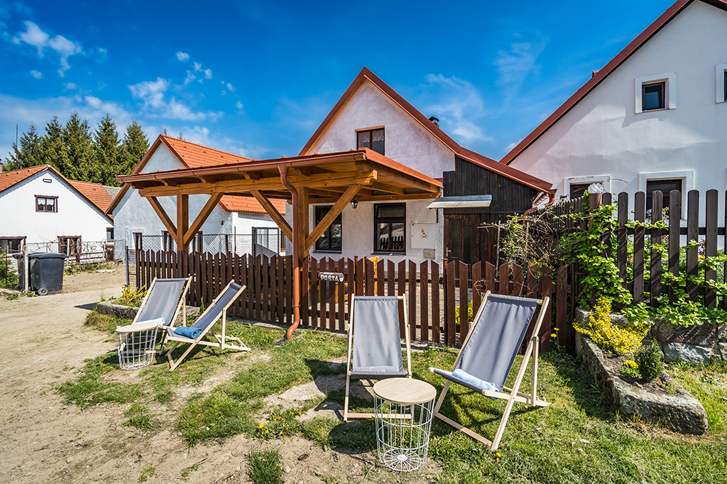 Malá rodinná chalupa s předzahrádkou a posezením v zastřešené pergole s grilem, plně vybavenou kuchyní, koupelnou a odděleným wc.